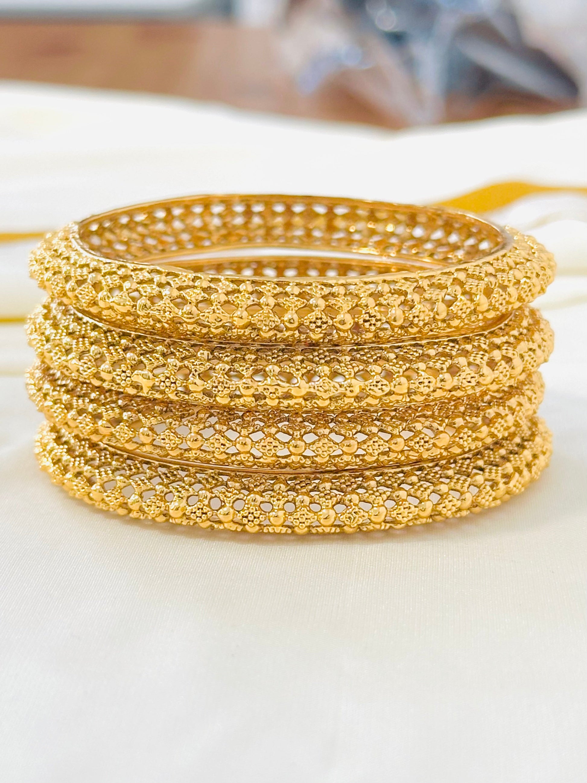 Intricate Gold-Toned Filigree Pattern Bangles (Set of 4)